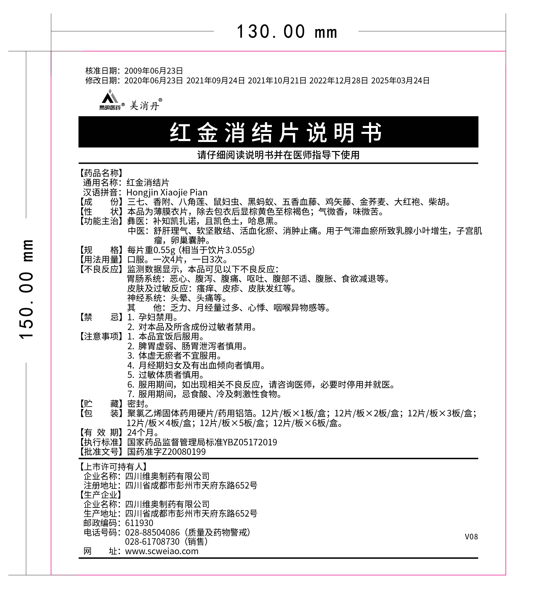 我司對紅金消結片說明書(批準文號:國藥準字Z20080199)進行修訂